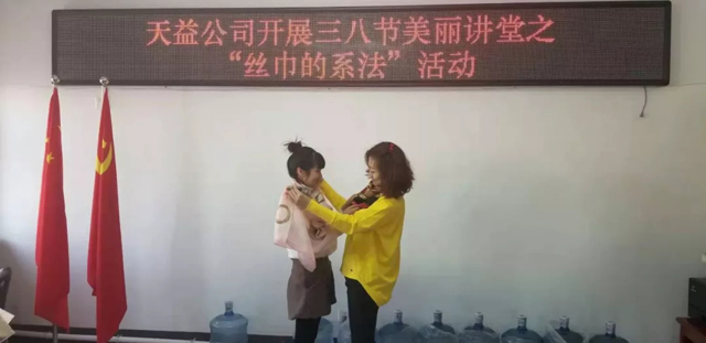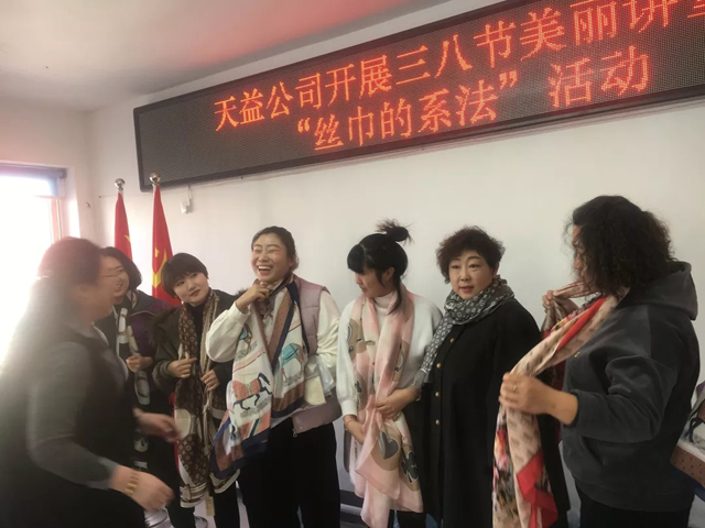 3月8日上午,天益公司舉辦了慶?!叭斯?jié),絲巾造型歡樂賽”活動(dòng),向偉大而無私奉獻(xiàn)的女性同志們致以節(jié)日的問候。