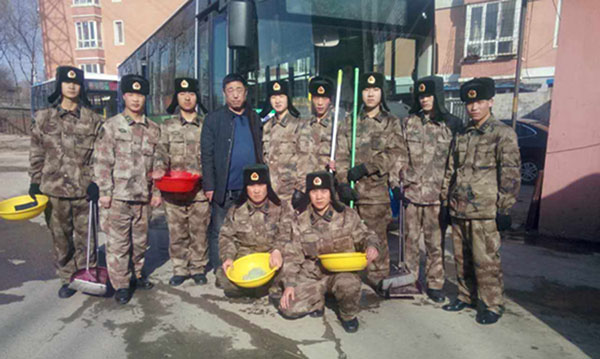 圖為:107路車隊(duì)黨支部與沈陽炮兵學(xué)院開展“擁軍愛民促和諧”主題共建活動(dòng)。