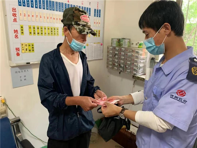 張恩勇?lián)睦先说纳眢w,關(guān)切的問道:“大爺,天氣這么熱,您要去哪?。俊崩先擞行┱Z無倫次,一會兒說回渾南,一會說去沈北。張恩勇見老人異常,為防止其發(fā)生意外,便安排他在距離自己最近的座位上坐好,并安撫他不要下車。