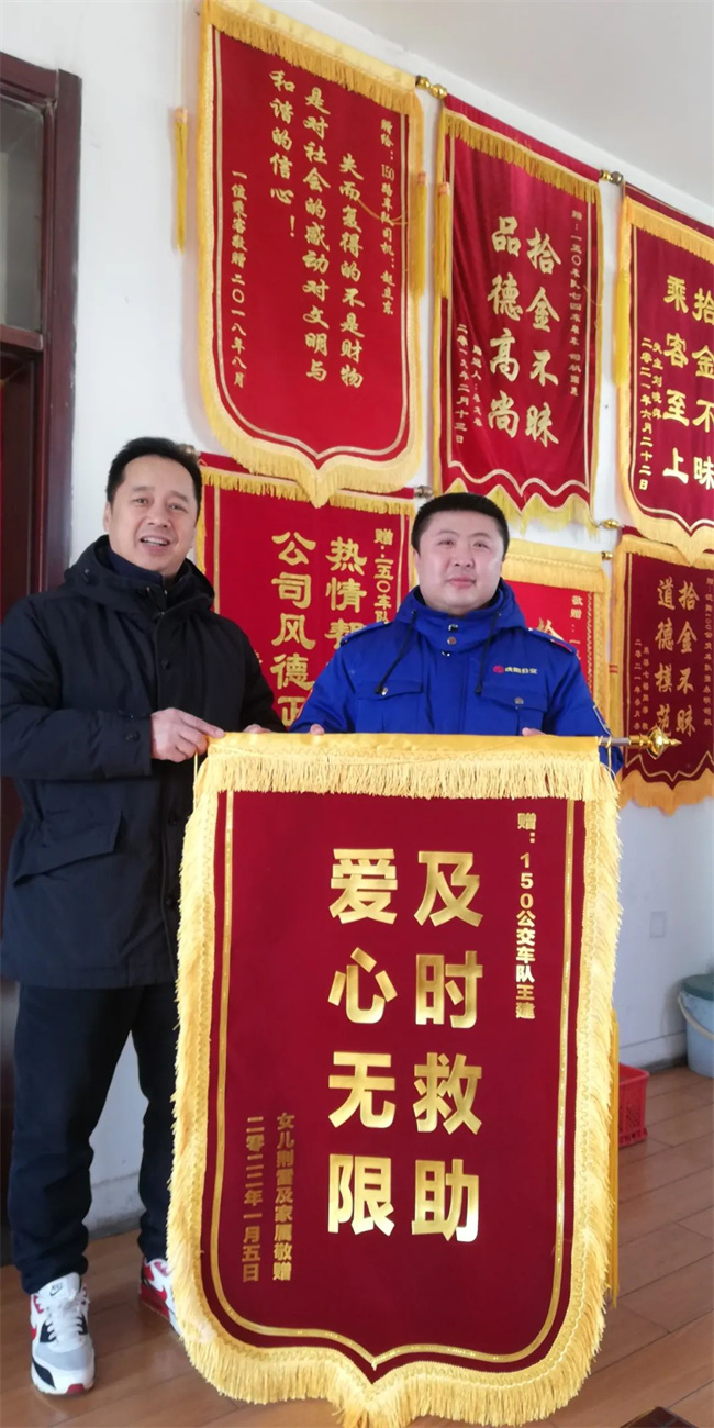 1月9日上午,老人的家屬再次來到車隊,還特意為駕駛員王建制作了一面錦旗,上面寫有“及時救助,愛心無限”的字樣,表達了無限的感激之情。當(dāng)家屬把錦旗送到王建手中,他不好意思地說道:“這都是我應(yīng)該做的?!?/p>