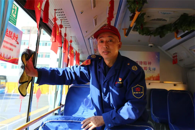 1月31日,除夕早7點(diǎn)多,駕駛員趙江提前來到車隊(duì),像往常一樣打掃衛(wèi)生、給車廂消毒。8點(diǎn)剛過,他駕駛著211路公交從車隊(duì)出發(fā)。