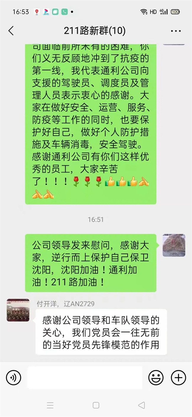 面對(duì)駕駛員的辛苦付出,公司通過(guò)微信群,向支援的駕駛員表達(dá)了公司的關(guān)心與慰問(wèn)。大家說(shuō),看到公司的問(wèn)候和關(guān)心,心里特別溫暖。駕駛員付開(kāi)洋說(shuō):“感謝公司的關(guān)心,一定會(huì)一往無(wú)前發(fā)揮黨員先鋒模范作用?!?/p>