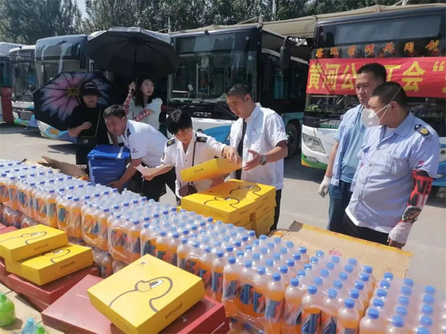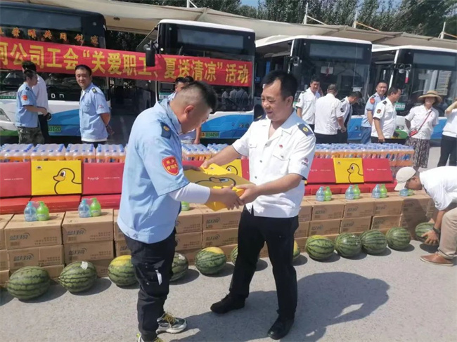 7月26日是二伏的第一天,酷暑難當(dāng)。黃河公司由工會(huì)牽頭、領(lǐng)導(dǎo)班子帶隊(duì),在西江街公交樞紐站開展了“關(guān)愛職工、夏送清涼”活動(dòng)?;顒?dòng)中,公司領(lǐng)導(dǎo)班子將購(gòu)置的飲料、礦泉水、浴巾、毛巾、西瓜、洗手液等防暑降溫及清潔物品,分發(fā)給公司公司所屬14個(gè)車隊(duì)的22條線路、及機(jī)關(guān)、車間。