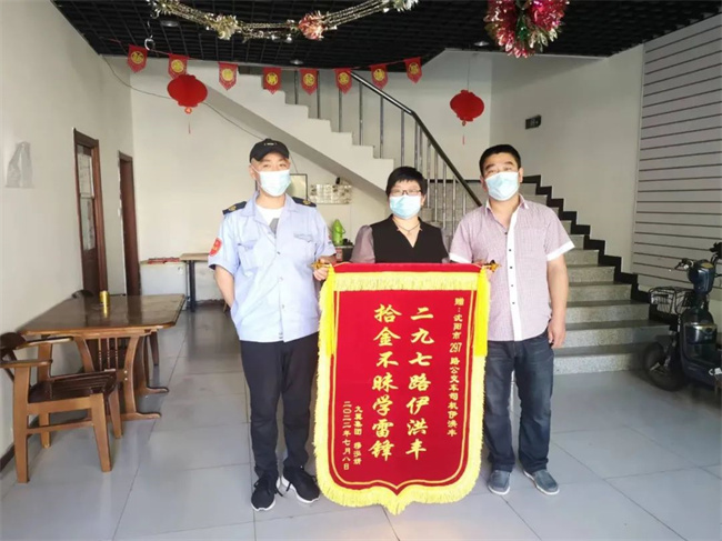 8月27日,一位女士帶著錦旗來(lái)到297路站務(wù)室向伊洪豐表示感謝。