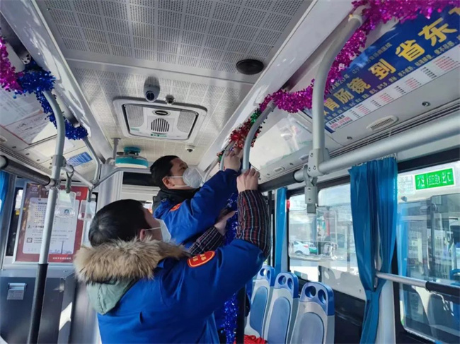 濃濃的節(jié)日氛圍讓乘客倍感溫馨,很多乘客上車后都紛紛被眼前的布置所吸引,不禁感慨道:“每當(dāng)辭舊迎新時,總是最先在公交車上感受到。愿這紅彤彤的喜慶氛圍給我們帶來好運和吉祥,也祝愿所有的公交師傅們身體健康、平安喜樂。”
