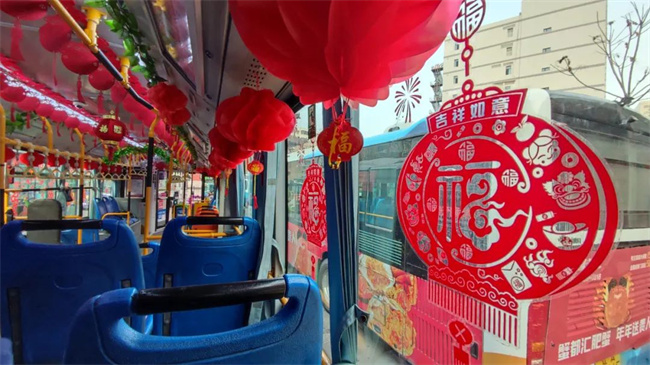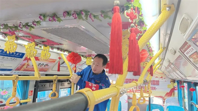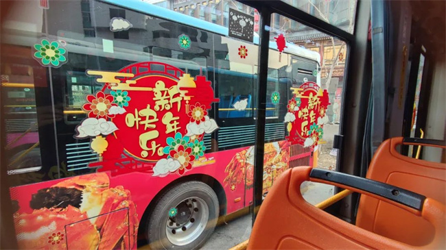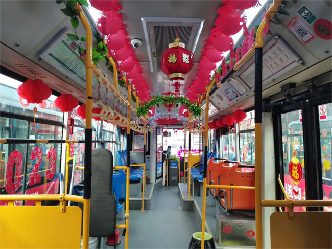 在辭舊迎新之際,通運公司249路駕駛員王眾自費購買了小燈籠,拉花,窗花,福字等飾品來扮靚自己的愛車。被精心“打扮”后的車廂,年味十足。