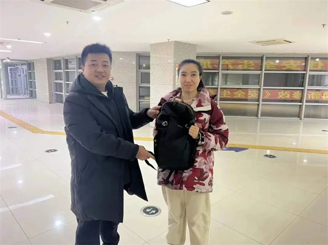 趙鑫回到車隊后,將背包第一時間上交到車隊,經(jīng)過車隊的共同努力,終于聯(lián)系到失主本人,并告知盡快前來車隊認(rèn)領(lǐng)。