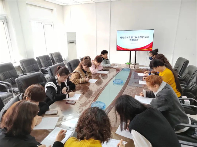 為慶?!叭恕眹H婦女節(jié),進(jìn)一步維護(hù)女職工合法權(quán)益,不斷增強(qiáng)廣大女職工知法、懂法、守法并依法維護(hù)自身權(quán)益的意識和能力,通運(yùn)公司工會在3月7日舉辦女職工權(quán)益保護(hù)答題活動。
