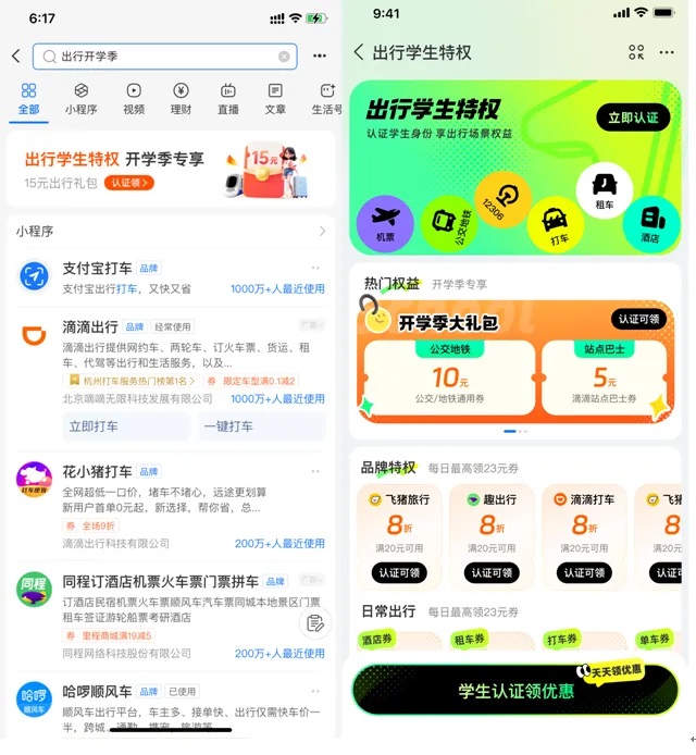 只需打開支付寶搜【出行開學季】