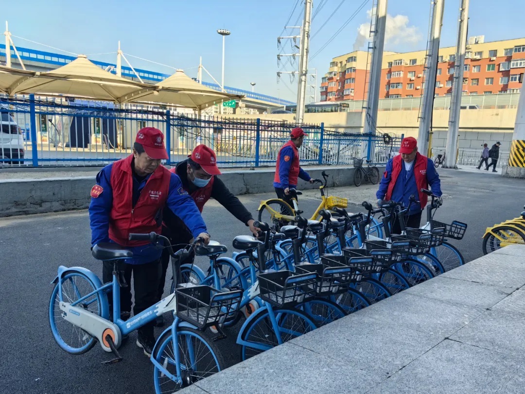 此外,志愿者們分別前往沈陽北站公交樞紐站、龍之夢公交樞紐站、長客西站公交樞紐站進行清掃除塵志愿服務活動,讓每一位到站乘客感到整潔與溫馨。志愿者們還將隨意停放的共享單車、自行車、電動車擺放整齊。