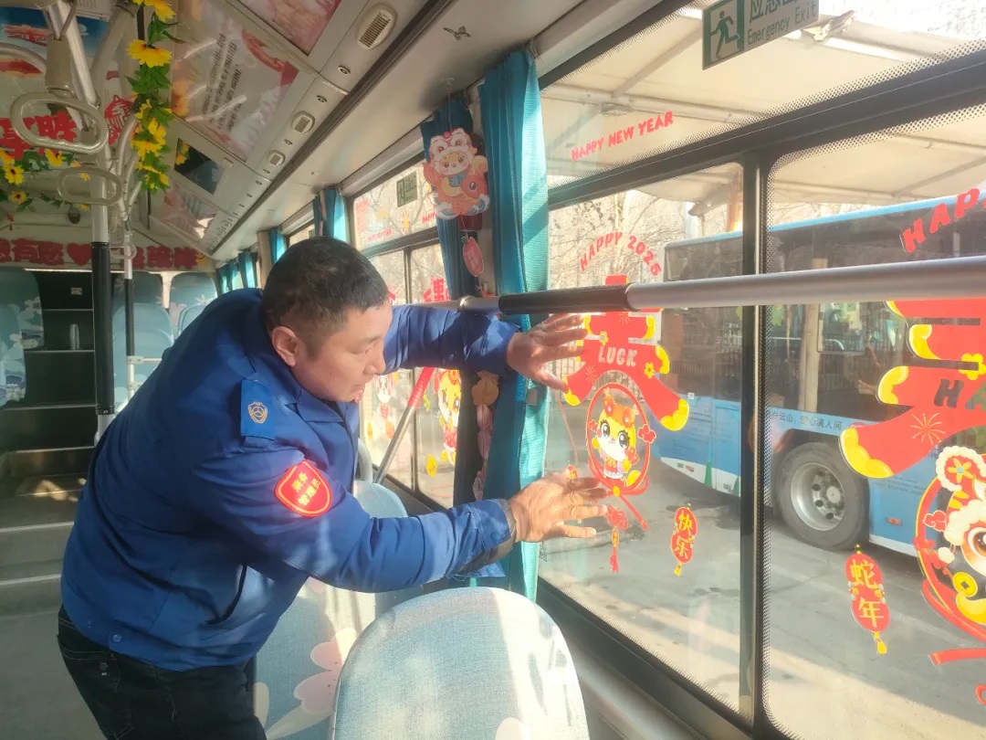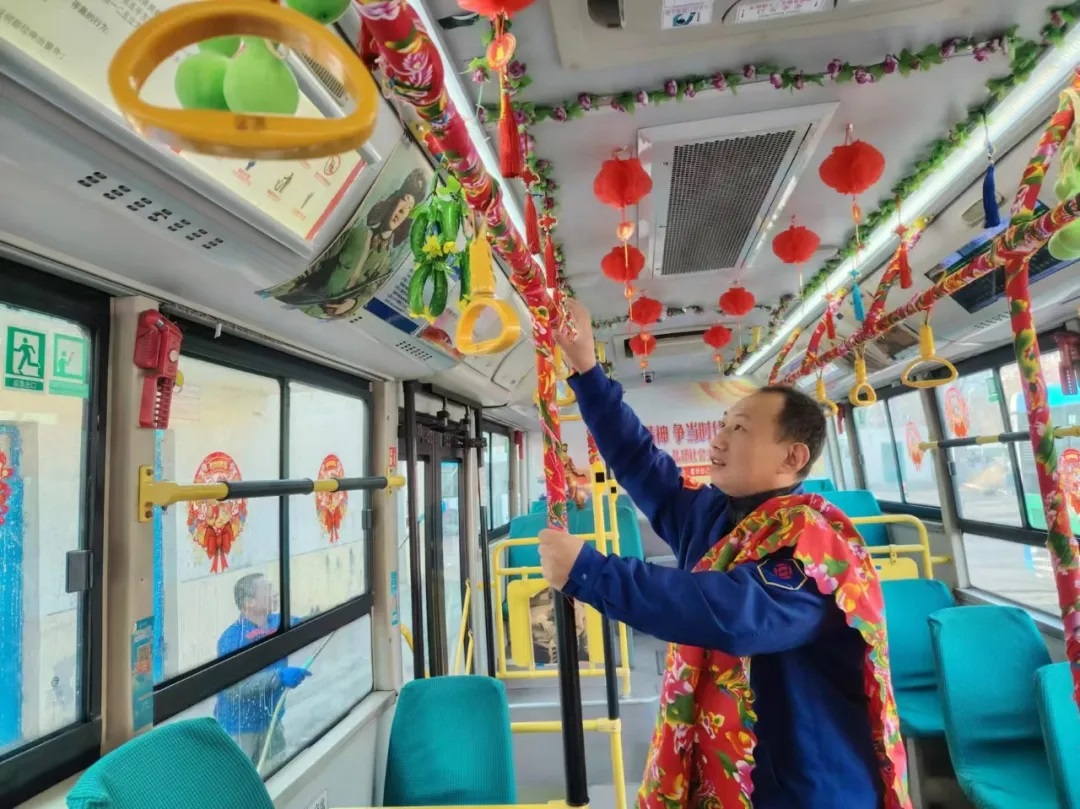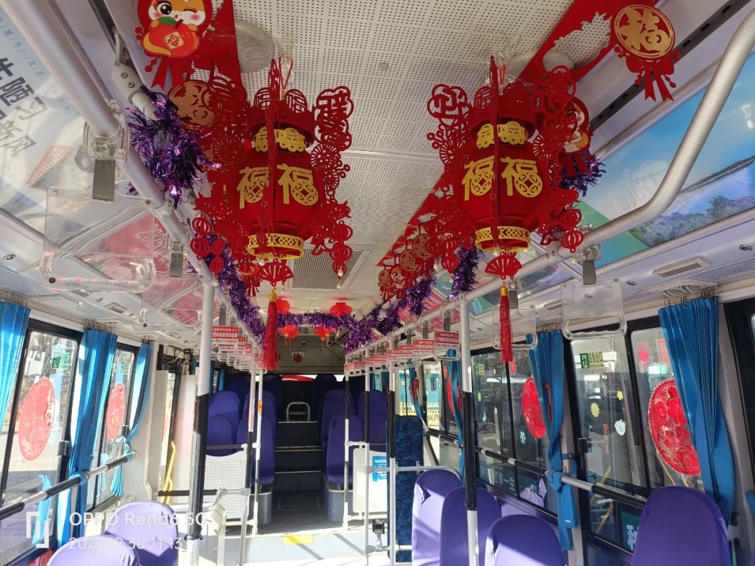 據(jù)了解,元旦前夕,沈陽(yáng)客運(yùn)集團(tuán)按照全市“我是雷鋒”——沈陽(yáng)市窗口行業(yè)文明誠(chéng)信服務(wù)寵客(qiě)行動(dòng)工作安排,落實(shí)全市“雙節(jié)”節(jié)日氛圍布置工作要求,積極開(kāi)展“布置車廂,扮靚沈陽(yáng)”行動(dòng),各車隊(duì)利用行車間歇和休息時(shí)間裝扮車輛,懸掛新年拉花、紅燈籠,張貼新年窗花及融入“蛇年”元素的貼紙等。目前,已有1188臺(tái)途經(jīng)主要街路、景區(qū)、商業(yè)街區(qū)的公交車輛完成了裝飾,車內(nèi)年味十足,客運(yùn)集團(tuán)計(jì)劃在春節(jié)之前完成全部運(yùn)營(yíng)車輛的裝飾布置工作。