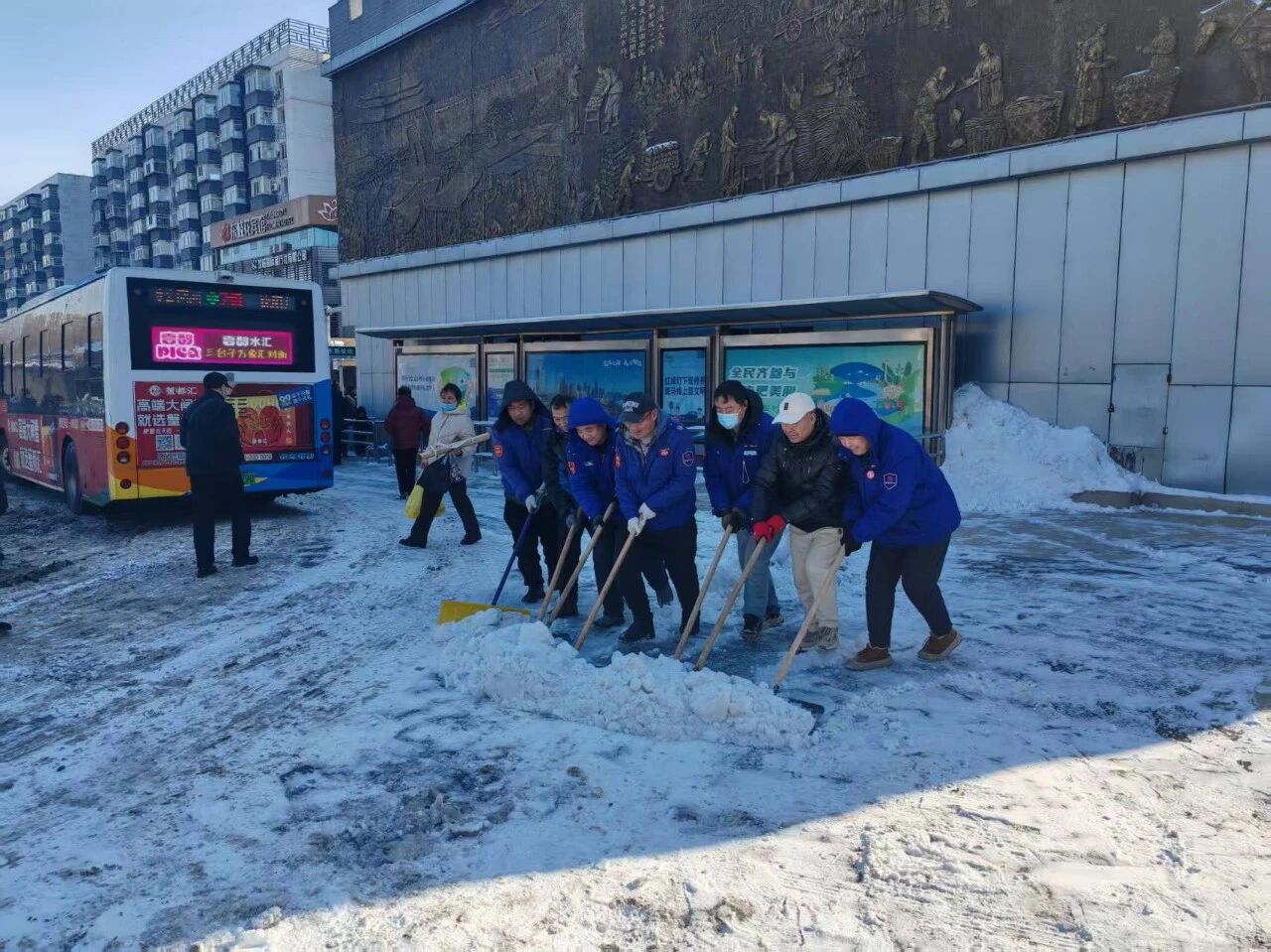 (東陵車(chē)隊(duì)黨支部攜手紹棠社區(qū)志愿者在大東門(mén)站區(qū)開(kāi)展除雪行動(dòng))