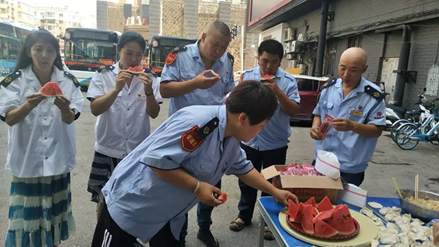 頭伏第一天雖炎熱,但各車隊(duì)都在努力為一線職工改善伙食,提供防暑降溫的礦泉水、綠豆水、西瓜等,不僅使大家開(kāi)胃降溫,又增進(jìn)了干部職工間的交流,進(jìn)一步營(yíng)造了車隊(duì)“一家親”的和諧氛圍。
