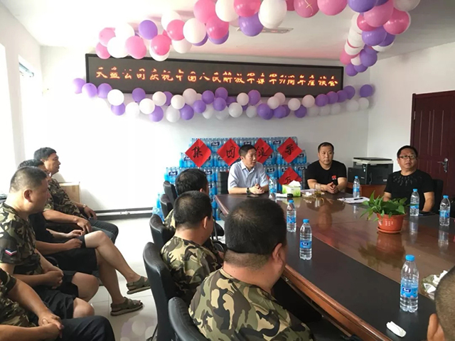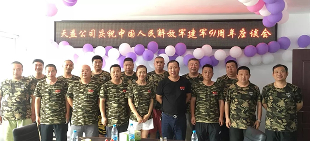2018年“八一”是中國(guó)人民解放軍建軍91周年紀(jì)念日。在節(jié)日來臨前夕,天益公司召開慶祝中國(guó)人民解放軍建軍91周年座談會(huì)。