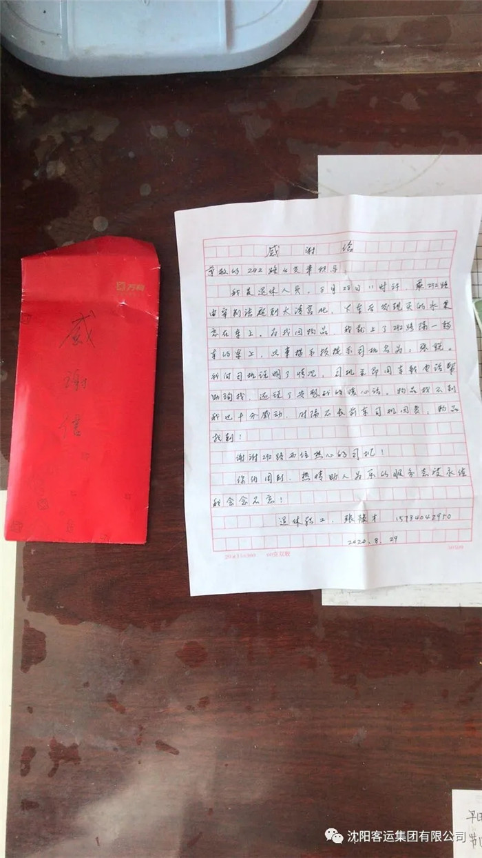 深受感動的老人第二天一大早就帶著一封感謝信來到了292車隊(duì),對駕駛員張銳在工作中的熱情和責(zé)任心表示贊揚(yáng)。