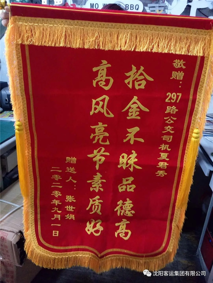 過了一會,張女士來到了站務(wù)室,她回憶到自己乘坐297路公交車,下車的時候發(fā)現(xiàn)手機(jī)不見了,于是她求助路人給自己的手機(jī)撥打電話,最后得知手機(jī)掉落在剛乘坐的公交車上并被駕駛員撿到,張女士對高健隊(duì)長和駕駛員夏君秀表示萬分感謝,第二天早晨還送來了錦旗表達(dá)自己的謝意。
