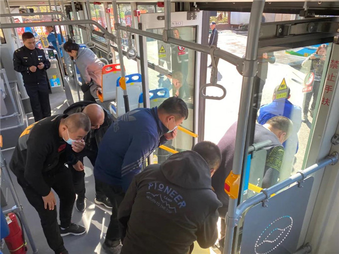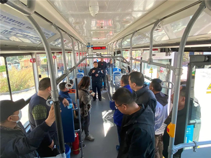 消防安全演練中,李教官在公交車上講解安全錘的正確使用方法,并模擬公交車失火后的逃生方法及注意事項(xiàng),迅速、有序、規(guī)范地從公交車出口疏散。隨后,李教官詳細(xì)介紹滅火器的正確使用方法及滅火時的注意事項(xiàng),現(xiàn)場指導(dǎo)職工進(jìn)行滅火演練。