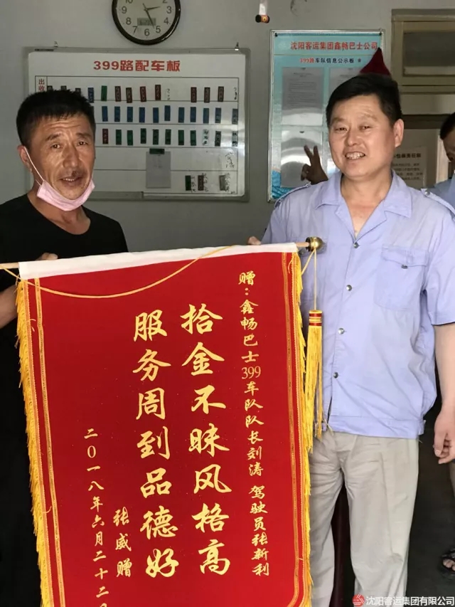 原來(lái)乘客張先生乘坐399路公交車趕往沈陽(yáng)站時(shí),在車內(nèi)睡著了,不慎將錢包掉在了車廂的座椅縫隙中,在下車時(shí)候并未察覺,到了車站才發(fā)現(xiàn)錢包丟失。張先生說(shuō)道:“幸虧第一時(shí)間車隊(duì)聯(lián)系到了他,不然損失了錢財(cái)不說(shuō),證件的補(bǔ)辦也是十分麻煩的?!钡诙欤丝蛷埾壬氐厮蛠?lái)了一面錦旗,張先生對(duì)駕駛員張新利的感激之情溢于言表。