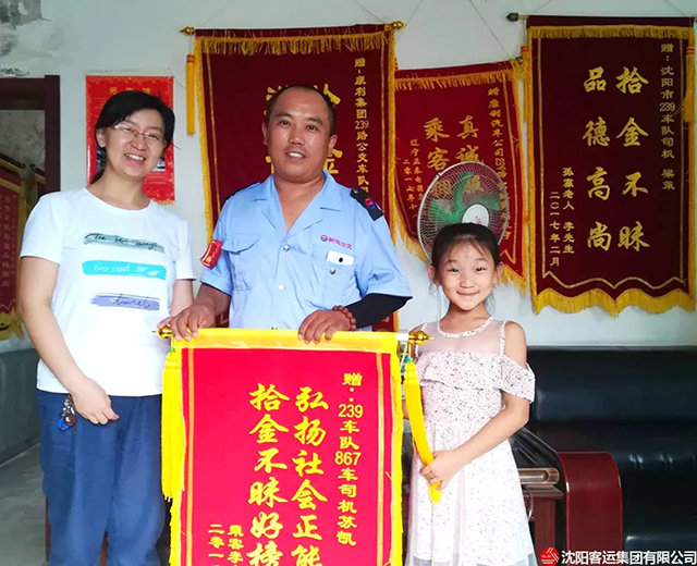 8月23日上午,乘客李女士帶著女兒將一面錦旗送到康利公司239車隊(duì),并要當(dāng)面感謝好心駕駛員蘇凱。